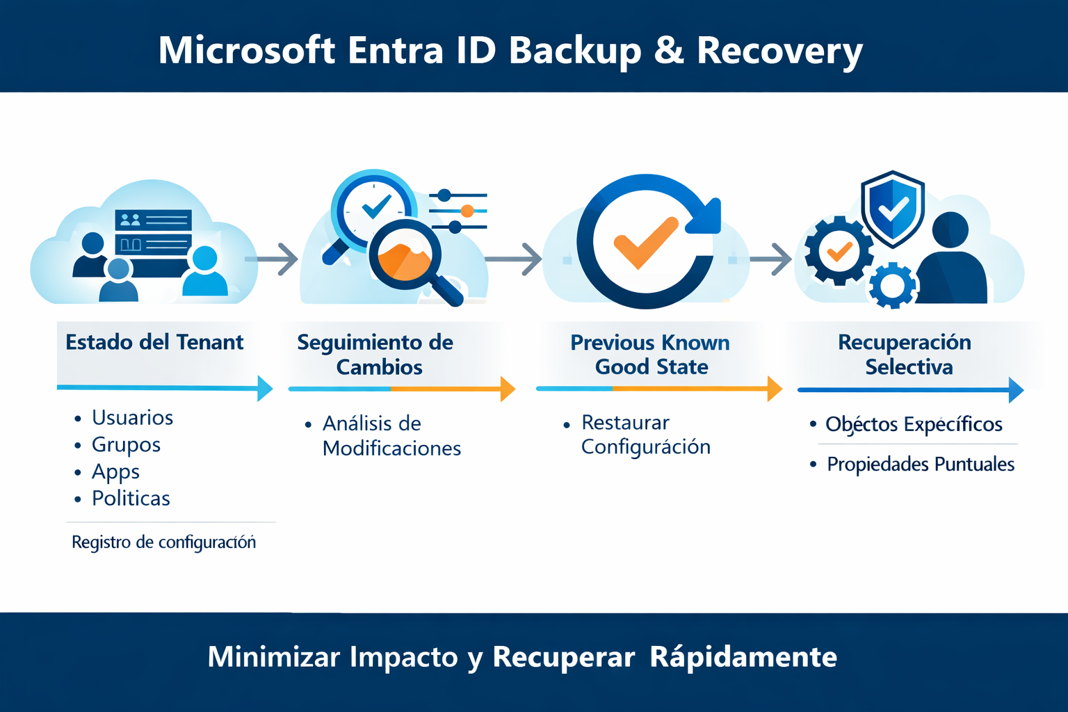 Introducción Durante años, uno de los mayores puntos débiles en identidad cloud ha sido claro: no existía una forma nativa de hacer backup y recovery de Microsoft Entra ID. Podíamos auditar, monitorizar e incluso automatizar configuraciones… pero no podíamos restaurar…